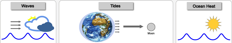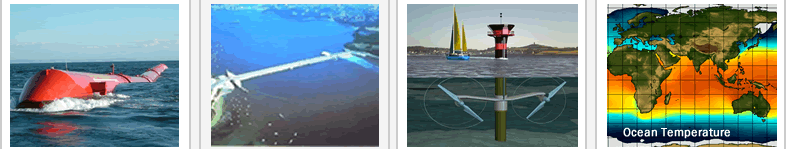 Marine Energy TechnologiesMarine technologies are devices immersed in the earth's ocean capturing the energy from waves, tides and the heat stored in the water. They offer huge potential, as the resource is largely untapped so far. This is a relatively young branch of renewables. Unlike in the wind industry, no dominant deisgn has emerged yet. |